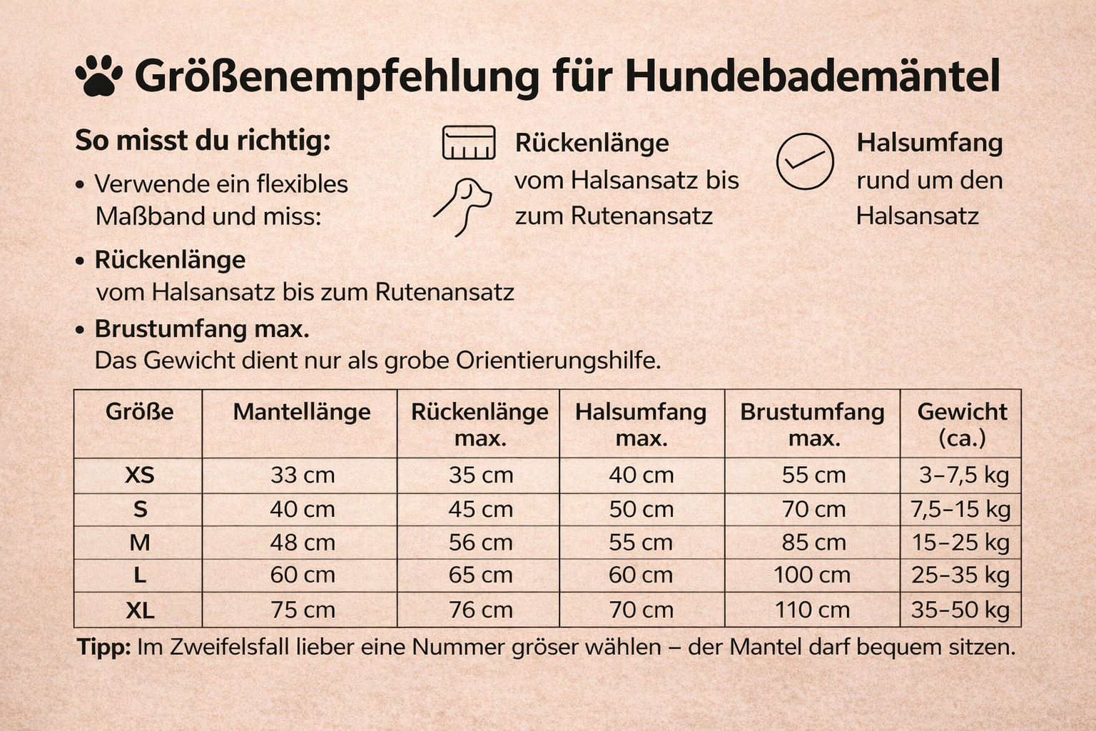 Weicher Mikrofaserstoff saugt Feuchtigkeit blitzschnell auf, wärmt deinen Hund und sorgt dafür, dass er sich nach dem Spaziergang rundum wohlfühlt – ganz ohne Rubbeln oder Föhnen.
